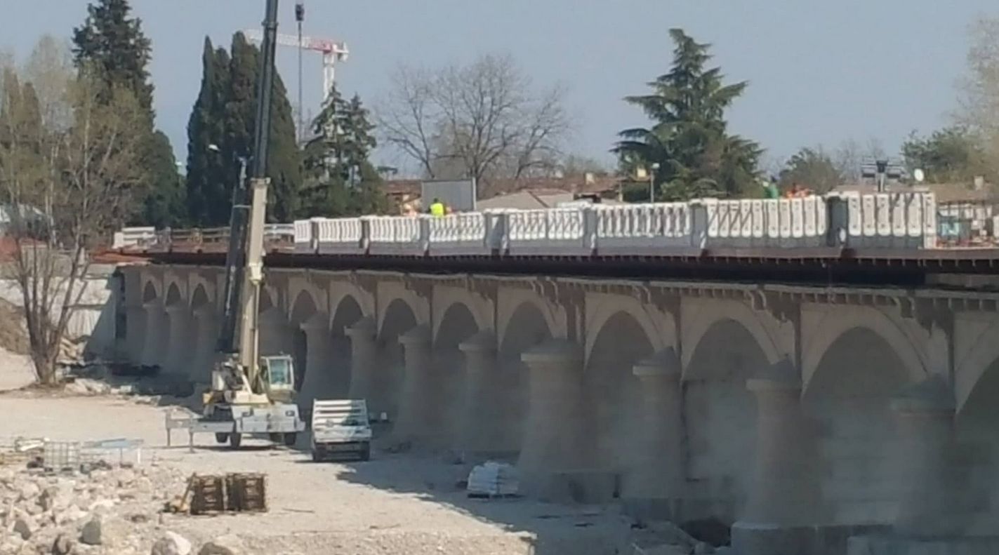 Ponte della Priula, si montano i parapetti (foto Giulio Guarini). Continuano senza sosta i lavori di ripristino del Ponte della Priula. Questa mattina, lunedì 1 aprile, con l’ausilio di gru sono stati posizionati e sistemati i parapetti. Durante l’inaugurazione del tratto di collegamento dell’adiacente ponte Bayley che era stato portato via dalla piena del Piave nel novembre scorso, il governatore Luca Zaia aveva annunciato la riapertura dello storico Ponte della Priula entro la tarda primavera. Il Ponte della Priula si estende all’estremità sud-ovest del comune di Susegana ed ha sempre rappresentato un punto nevralgico nei collegamenti stradali, sin dall’epoca romana.