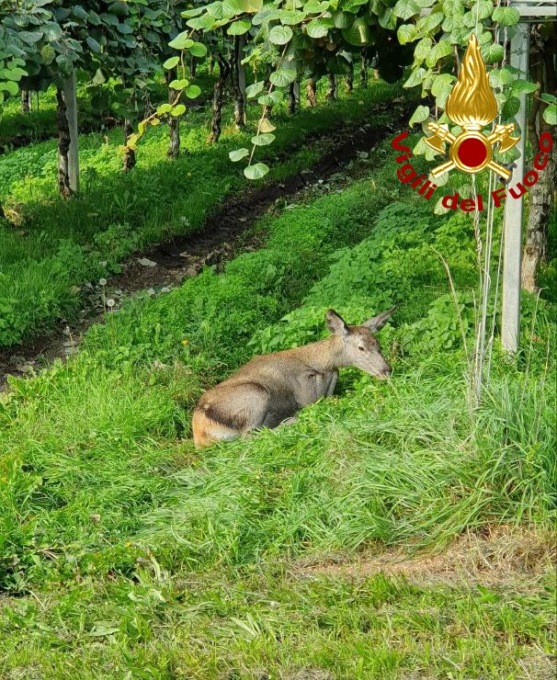 I vigili del fuoco sono intervenuti in canale della Vittoria a Volpago del Montello per salvare un cervo caduto in acqua.
