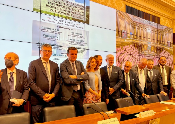 Un’occasione che ha visto riunirsi nella sala Caduti di Nassirya del Senato della Repubblica tutto il ‘sistema Paese’ compatto, dal Sottosegretario alle Politiche Agricole Alimentari e Forestali, Sen. Gian Marco Centinaio al Direttore Generale del Mipaaf, Giuseppe Ambrosio, fino ai principali rappresentanti dei Consorzi di Tutela del Prosecco: Elvira Bortolomiol, presidente del Consorzio Conegliano Valdobbiadene DOCG, Luca Giavi, Direttore generale del Consorzio di tutela Prosecco DOC e Ugo Zamperoni, presidente del Consorzio Asolo Prosecco e Vini del Montello. Moderato dal giornalista Osvaldo Bevilacqua, l’incontro è stato l’occasione per ribadire in modo chiaro la netta contrarietà verso la richiesta della Croazia di far riconoscere la menzione Prosek come legittima, e la forte volontà di tutelare l’eccellenza tutta italiana del Prosecco e delle Colline Patrimonio dell’Umanità.