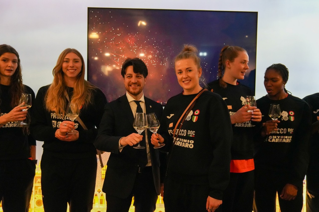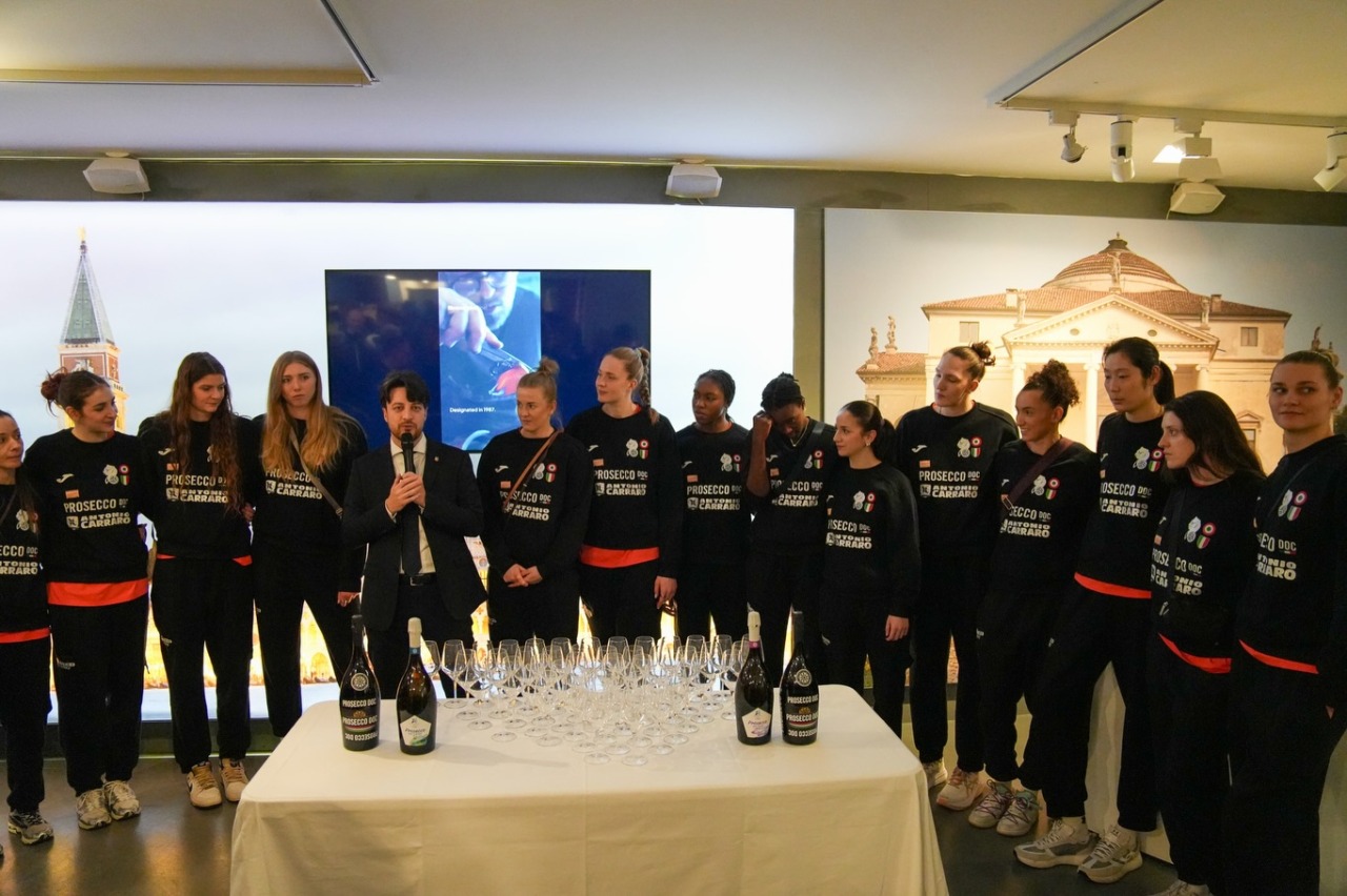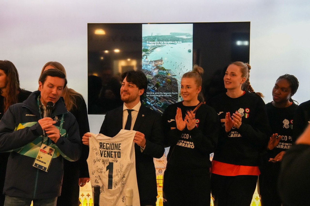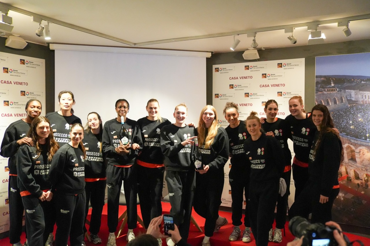 Piena atmosfera olimpica a Cortina. La Prosecco Imoco Conegliano volley, in visita a Casa Veneto nella località ampezzana, ha fatto tappa anche a Casa Italia.