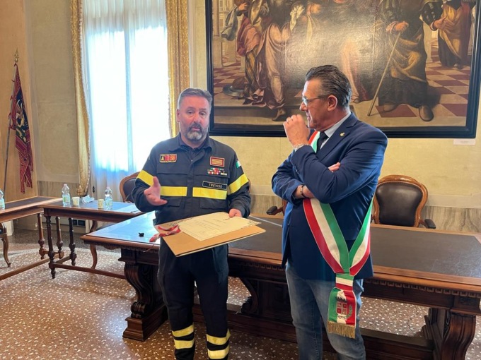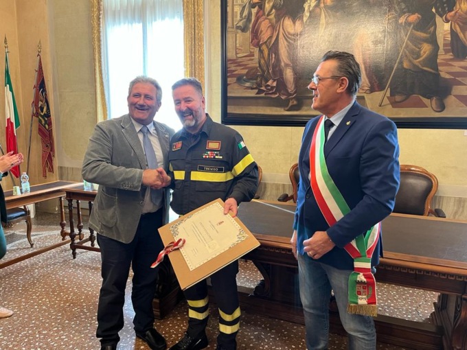 Ai saluti si aggiunto quello istituzionale del Comandante provinciale dei Vigili del fuoco di Treviso, Giuseppe Costa, rappresentato durante la breve cerimonia di stamattina dall’ispettore Ruggero Sartorato.