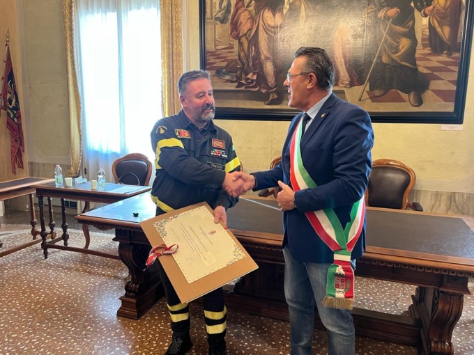 In pensione dal 1 novembre 2022 il Capo Distaccamento dei Vigili del Fuoco di Castelfranco Veneto, Paolo Galante. Stamattina in Comune una cerimonia ufficiale di saluto.