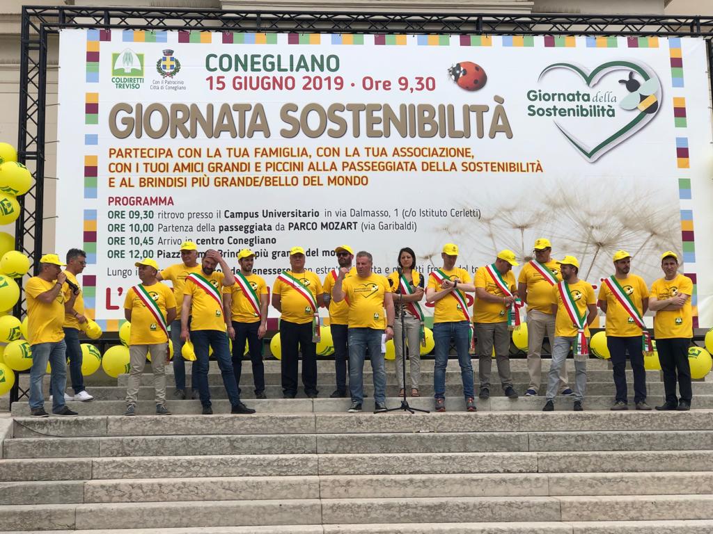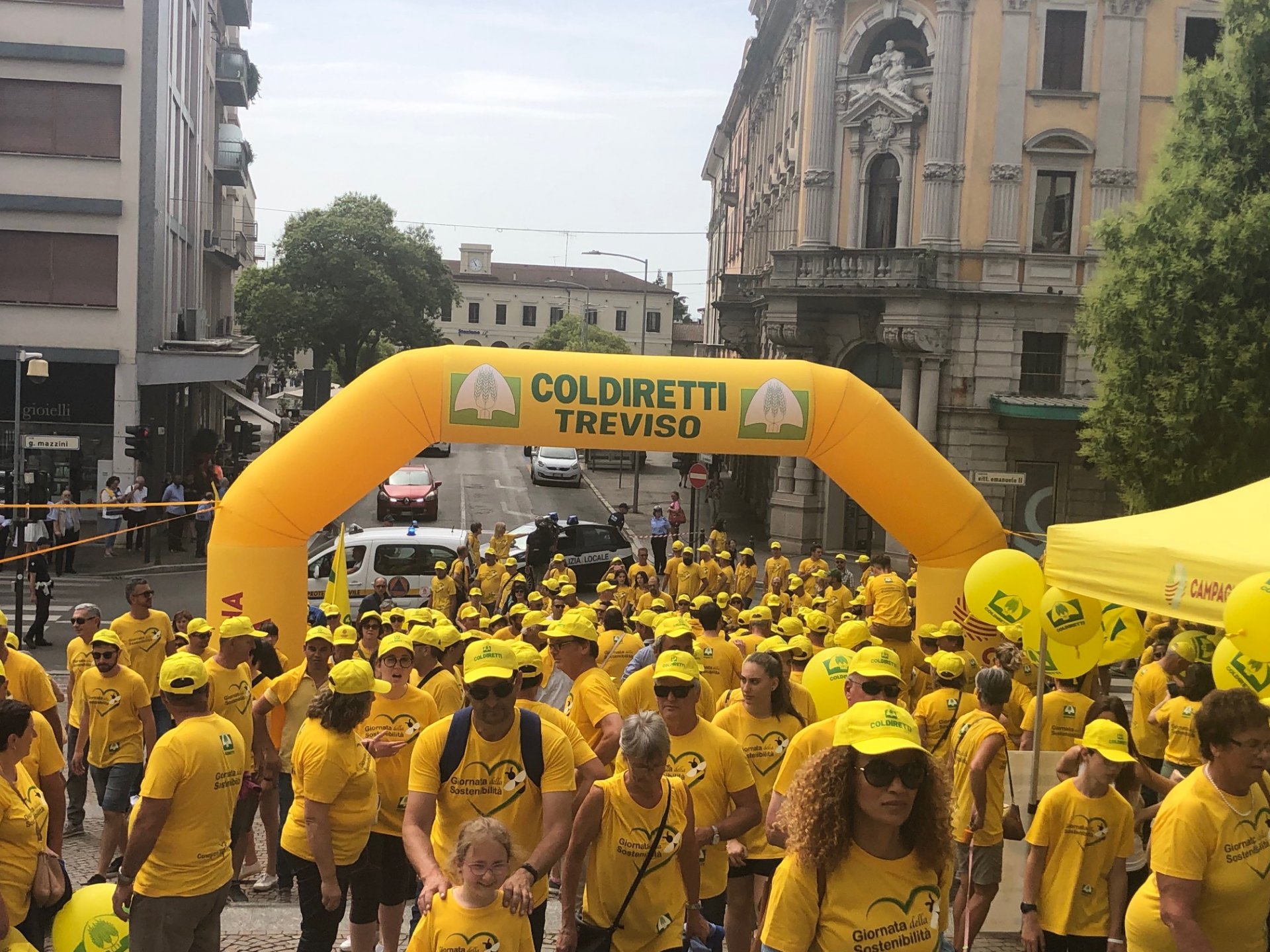 e la passeggiata partita dalla Scuola enologica e da Parco Mozart. In entrambi i luoghi c’erano ad aspettare i numerosi amanti della Sostenibilità due postazioni di Coldiretti Treviso per la consegna di un Kit omaggio contenente una maglietta, un cappellino, il coupon necessario per partecipare in piazza Cima al brindisi più grande del mondo e delle note informativa sull’iniziativa.