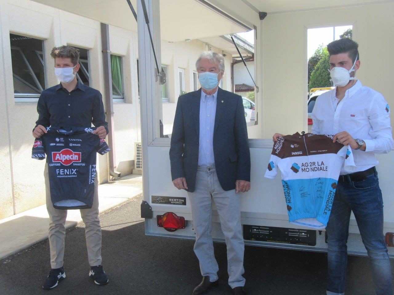 La sfida, a colpi di rilanci, si è conclusa il 1° maggio e ha visto prevalere Lino Bet su Antonello Dalla Cia e sul Fan Club Pinarella. Bet, per le maglie dei due ciclisti, ha offerto complessivamente 690 euro. Un altro appassionato, che preferisce restare anonimo, ha devoluto all’iniziativa 310 euro, portando così la raccolta dell’asta di beneficenza ad un totale di 1000 euro. La somma è stata consegnata nel pomeriggio di ieri, lunedì 4 maggio 2020, a Gabriele Padoan, presidente della Protezione civile di Conegliano – Associazione “Cavalieri dell’Etere”. Tra i presenti all’incontro, Alberto Stocco, titolare di Ca’ del Poggio, Sacha Modolo e Andrea Vendrame, Lino Bet e Fabio Chies, sindaco di Conegliano.
