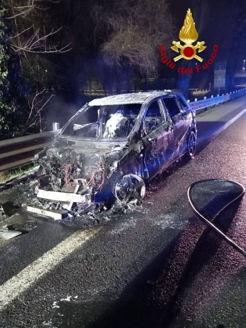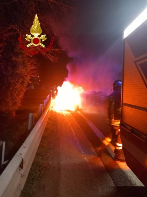 Il veicolo si è incendiato alle 2,50 mentre era in tangenziale e si stava dirigendo verso Paese