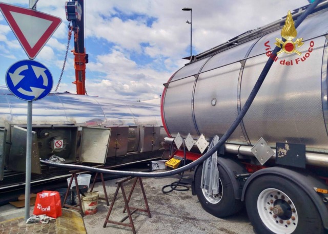 I Vigili del Fuoco hanno agito tempestivamente per mettere in sicurezza l’area ed evitare lo sversamento del contenuto della cisterna, che trasportava circa 19.000 litri di sostanze chimiche. L’intervento rapido ha consentito di prevenire conseguenze ambientali.