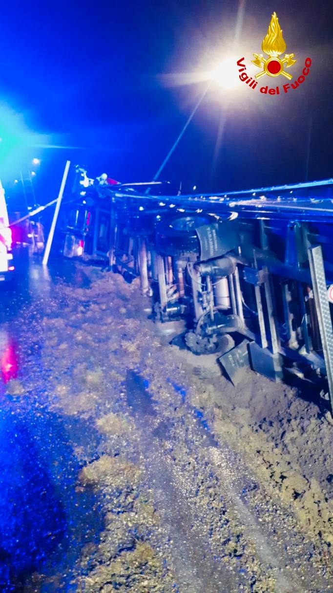 Carbonera, camion si ribalta all’alba: autista incastrato nell’abitacolo