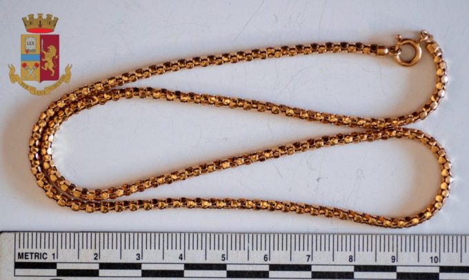 - 8 luglio 2022: ricettazione di un collier d’oro avvenuta a Conegliano in Via Manin ai danni di una signora classe 1944