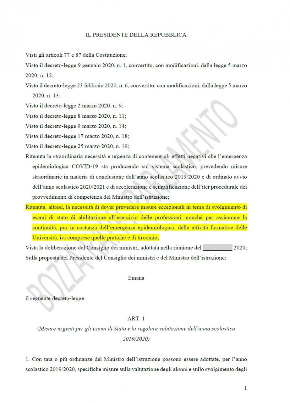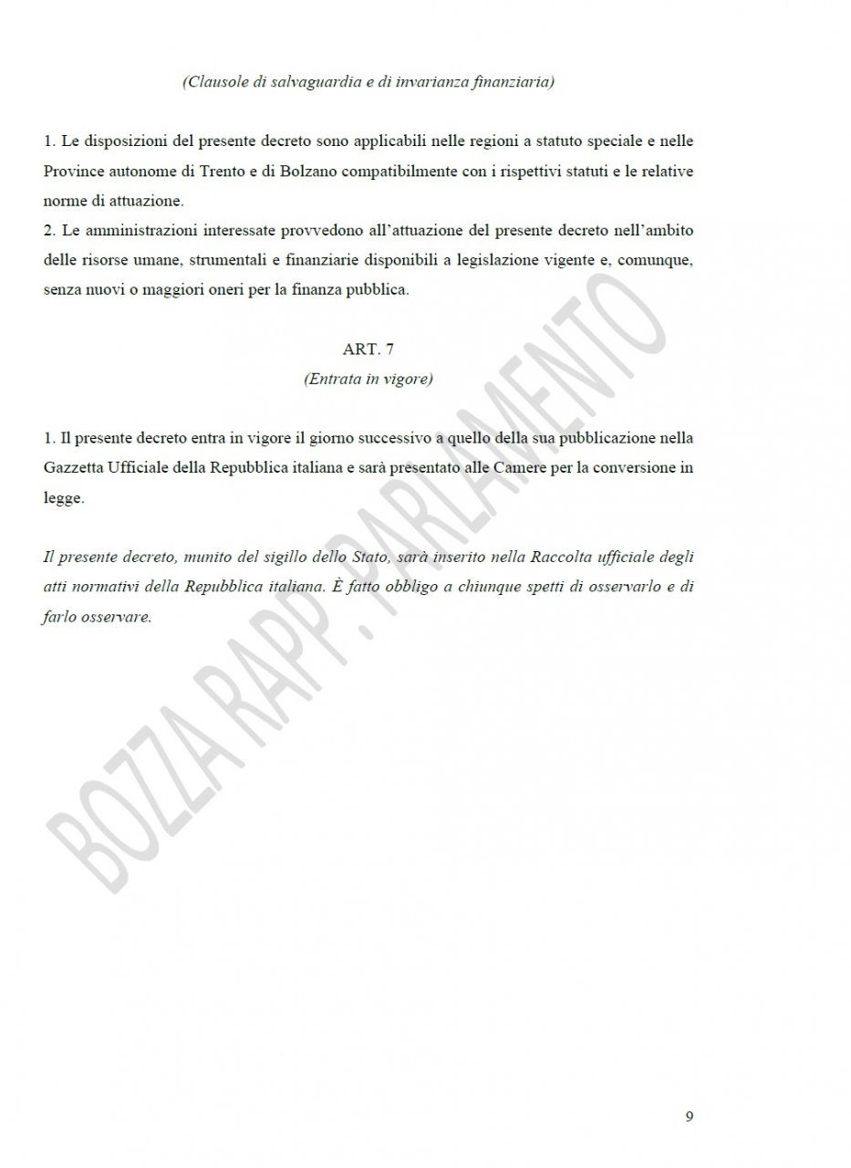 LEGGI LE BOZZE DEL PROVVEDIMENTO NELLA GALLERY IN BASSO