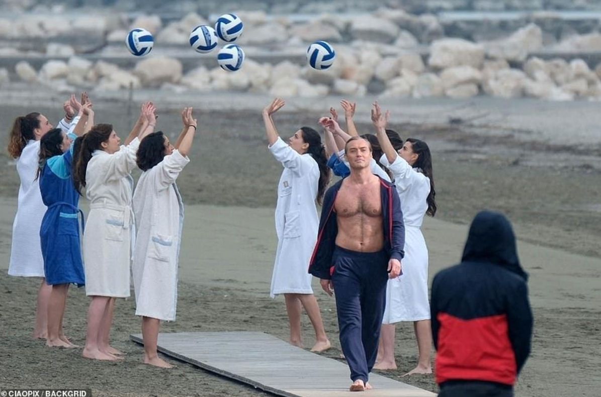 Nei giorni scorsi le riprese della serie di Sorrentino hanno già scatenato i social, per le scene girate da Jude Law in un “succinto” costume bianco mentre cammina tra le acque della laguna di Venezia e sulla spiaggia tra ragazze che giocano a pallavolo.