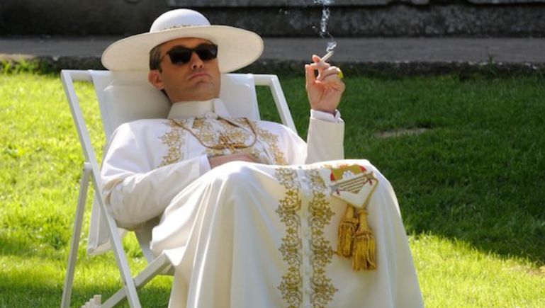 Le riprese, della durata prevista di una giornata, potrebbero essere rimandate causa il maltempo. La serie di otto episodi vede la partecipazione di Jude Law (nel ruolo di Papa Pio XIII) e John Malkovich. La serie è prodotta da Lorenzo Mieli e Mario Gianani per Wildside e co-prodotta da Haut et Court TV e Mediapro. In Italia andrà in onda su Sky Atlantic.