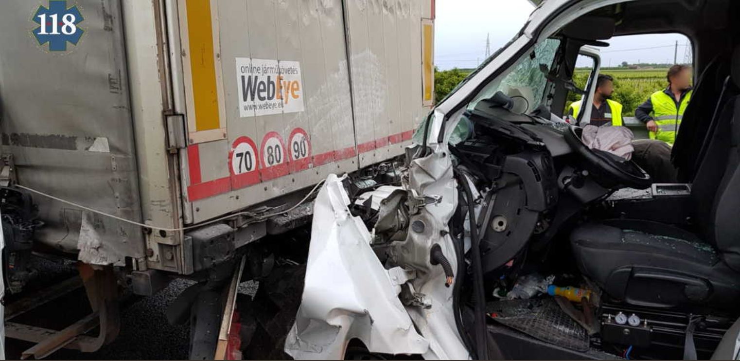 La sua Mercedes si incastra sotto il pianale di un camion tedesco.