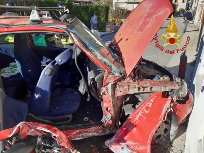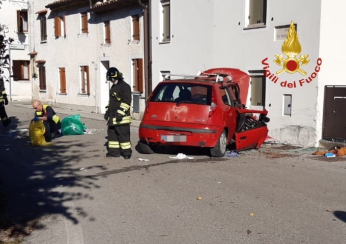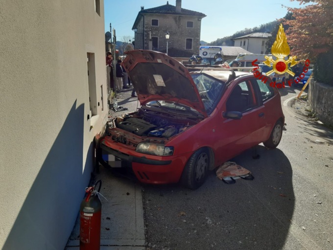 Ieri i vigili del fuoco sono intervenuti in via Jacopo Bernardi a Follina per un’auto finita contro il muro di un’abitazione.