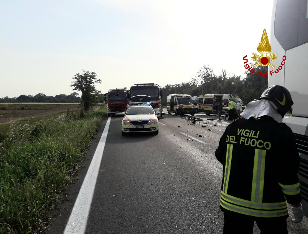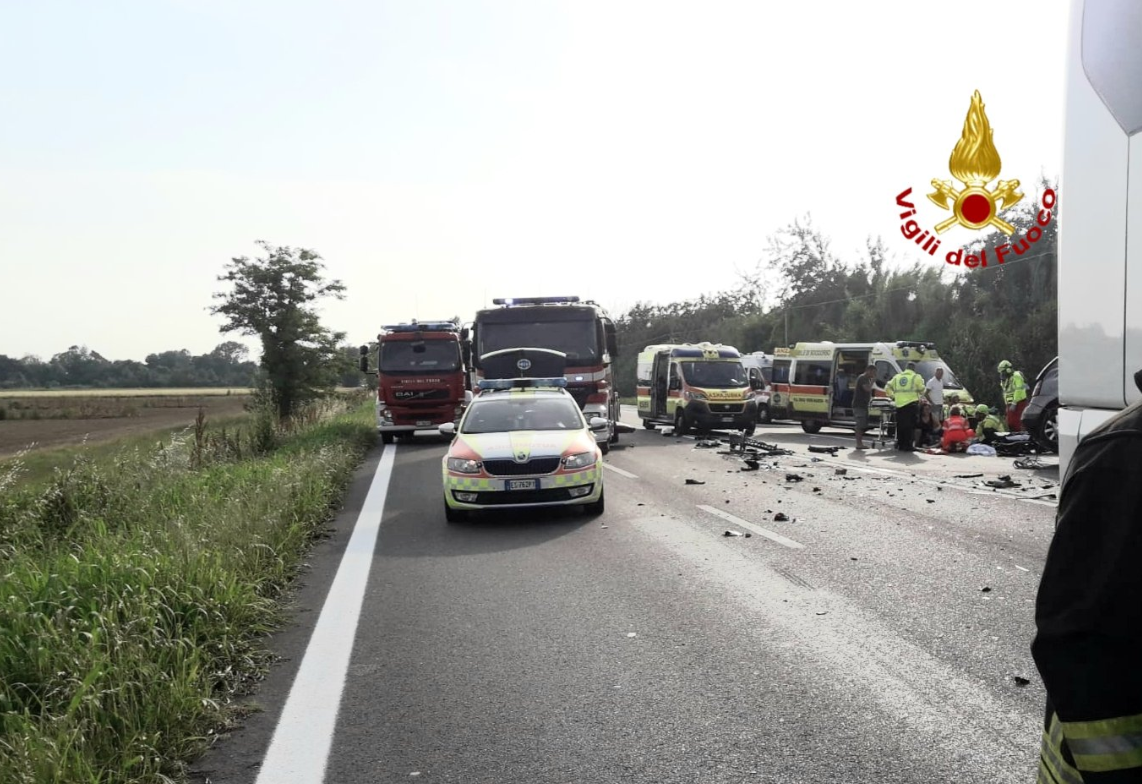 Frontale tra un’auto e un autobus: due morti. Spaventoso incidente nel tardo pomeriggio di sabato 15 giugno in località Montiron, lungo la Triestina. Un autobus dell’Atvo si è scontrato frontalmente con una Volkswagen Touran. Due vittime e cinque feriti il bilancio dell’incidente. Tra questi anche du bambini di 7 e 6 anni e una ragazza di 14 anni. Sull’auto hanno perso la vita un’altra ragazza di 13 anni e un uomo di 34 anni. La ragazza sopravvissuta è ricoverata in prognosi riservata all’ospedale di Mestre, ferita anche una donna in modo non grave. Il bambino di 7 anni è stato trasportato con l’elicottero del Suem di Treviso all’ospedale Ca’ Foncello, mentre l’altro bambino, di 6 anni, è stato elitrasportato all’ospedale di Padova. L’autista dell’autobus, che stava arrivando dall’aeroporto Marco Polo di Tessera, è rimasto incastrato tra le lamiere e liberato dai vigili del fuoco, trasportato all’ospedale di San Donà in codice giallo. Nessun ferito tra i passeggeri dell’autobus. Da una prima ricostruzione sembra che l’automobile abbia improvvisamente sbandato andandosi a schiantarsi frontalmente con il mezzo pubblico. Sul luogo dell’incidente sono intervenuti il Suem di Venezia e quello di Treviso con cinque ambulanze e due elicotteri, oltre a tre squadre dei vigili del fuoco.