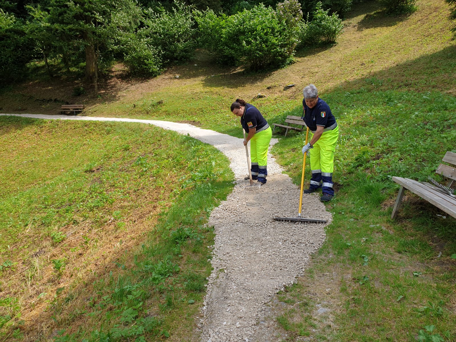 Un’operazione che sta vedendo impegnati nove volontari, due squadre da quattro capitanati dal responsabile Antonio Netto che, con l’autorizzazione del comune di Montebelluna, ha accolto la richiesta della regione Veneto di intervenire nei luoghi alluvionati. La prima squadra, partita lunedì 17 giugno e rientrata sabato scorso, è intervenuta a Pieve di Cadore e si è adoperata per il ripristino dei sentieri nelle località di Roccolo e Castelli. Un intervento svolto con motoseghe e ruspe e che si è concluso con la sistemazione del ghiaione spezzato necessario per ristabilire i percorsi.