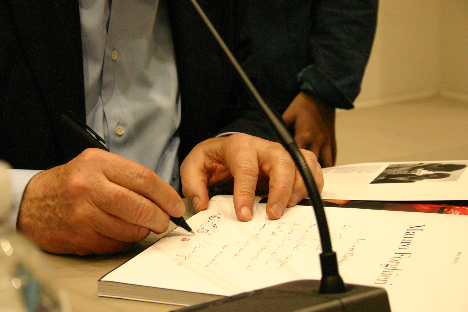 Un simpatico siparietto al termine della serata, quando un giovanissimo fan gli ha chiesto: “Ma con tutti questi impegni aveva spazio da dedicare alla famiglia?”. Forghieri gli ha risposto con un sorriso, invitandolo ad avvicinarsi a lui. “Tu diventerai un bravissimo ingegnere – gli ha detto – e ora ti faccio un regalo”. Su una riproduzione fotografica utilizzata per gli autografi gli ha così disegnato “al volo” un’auto da corsa.
