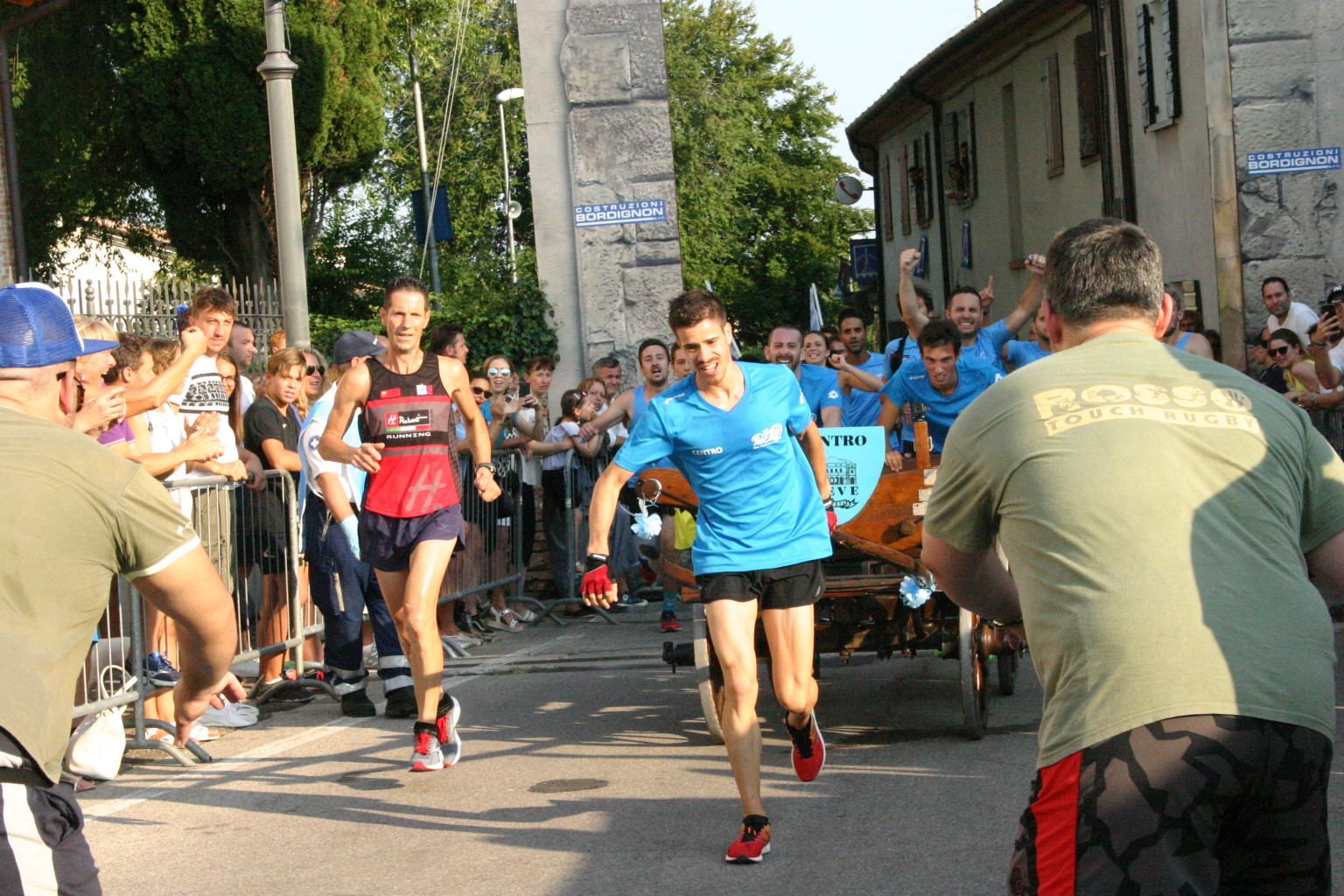 Palio del Vecchio Mercato, Il Centro La Pieve cala il Tris. Non c’è nulla da fare, sono i più forti, e oggi con il caldo afoso che ha imperversato lungo tutto il tracciato lo hanno una volta di più dimostrato. E’ la terza affermazione consecutiva dei celesti del capomastro Massimo Esposito con un tempo straordinario di 9’15’90. Seconda Posmon che aveva fatto registrare il miglior tempo a metà percorso, soltanto terza Pederiva. Posmon si aggiudica l’Intertempo di Santa Maria in Colle. Della squadra fanno parte Daniele Andolfato, Gabriele Calabretto, Marco Caverzan, Elisabetta Colbertaldo, Federico Colbertaldo, Marco Dalla Riva, Davide Della Toffola, Enrico Esposito, Giacomo Esposito, Marco Esposito, Luca Favero, Filippo Florian, Alessio Foscarini, Andrea Manzo, Paolo Pasin, Andrea Sebenello, Luca Sernagiotto e Gabriele Spada.
