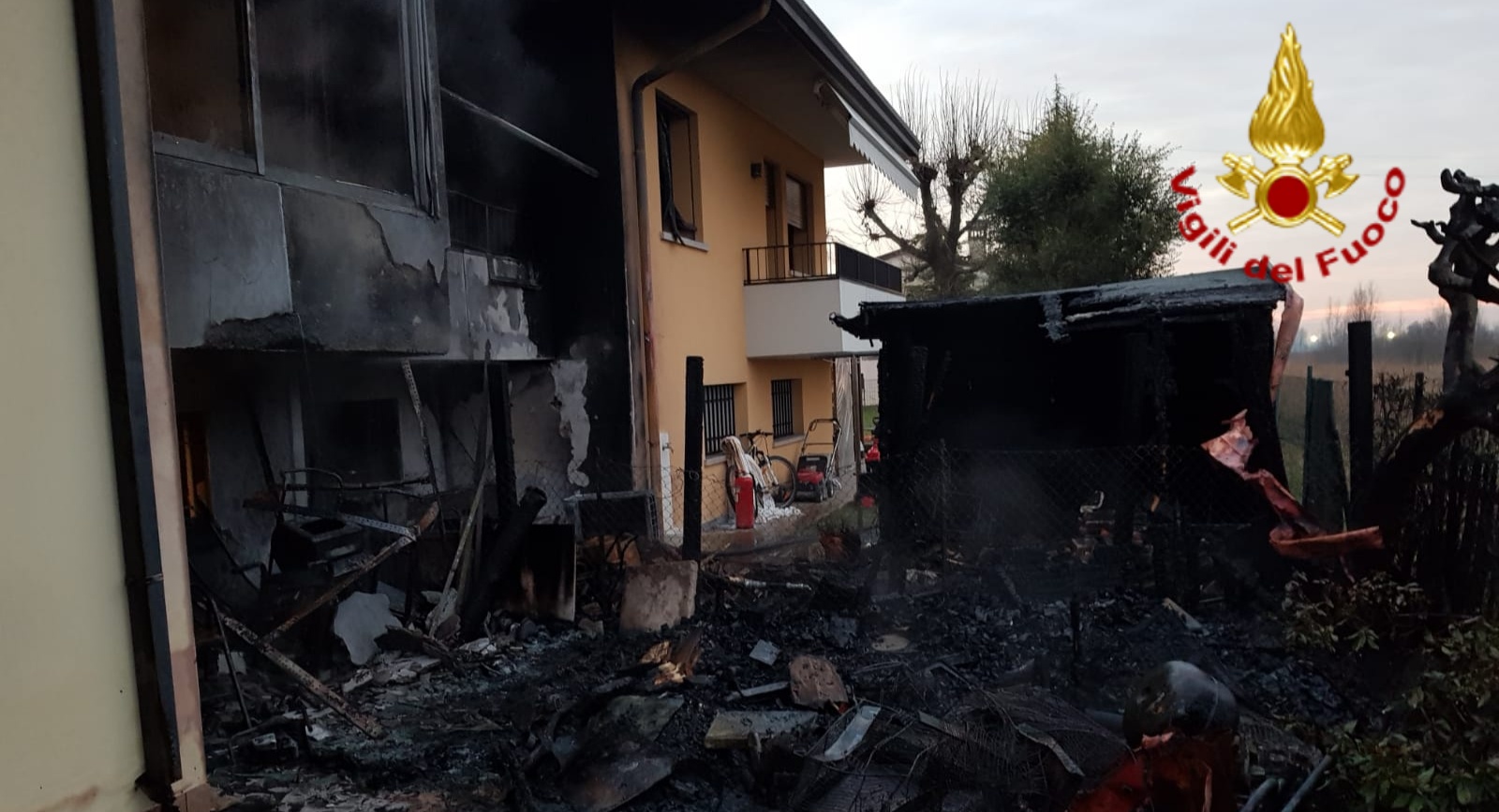 Ricovero attrezzi in fiamme, Vigili del fuoco al lavoro