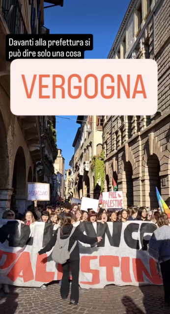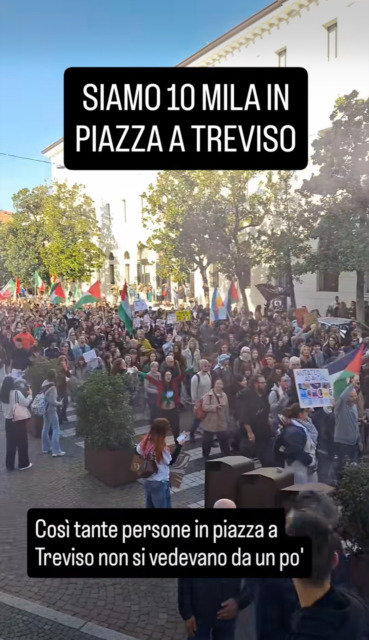 Il gruppo si è poi unito in via Roma con i sindacati che, fino a poco prima, avevano bloccato il cavalcavia di via Dandolo. Da lì, si sono diretti verso Piazza dei Signori sventolando bandiere palestinesi e intonando cori di solidarietà. Subito dopo, si sono diretti verso la Prefettura.
