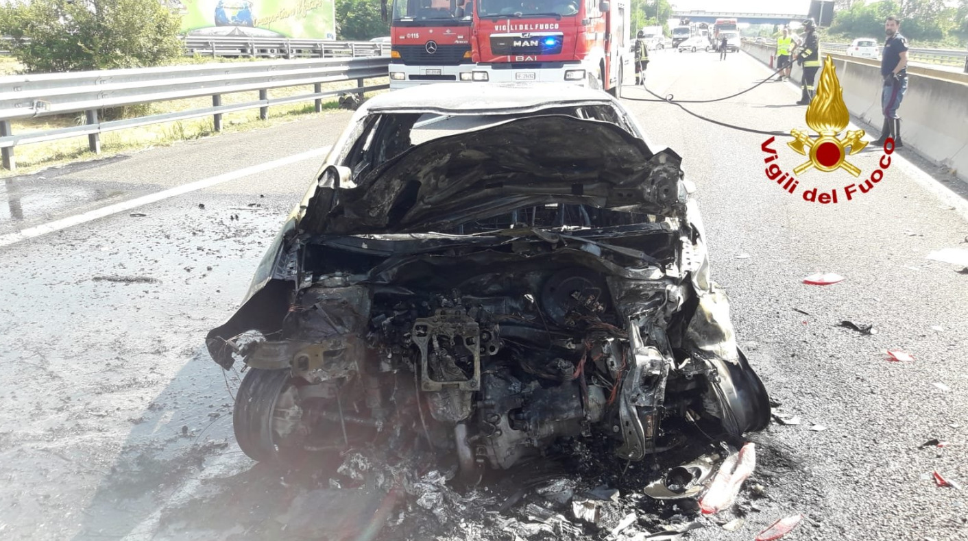 Aveva soltanto 41 anni, con la sua Doblò si è scontrato con un Peugeot che ha poi preso fuoco.