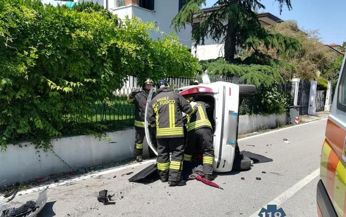 Scontro in via Steffani a Treviso. Violento scontro tra due auto in via Steffani a Treviso, due donne sono rimaste ferite, nelle immediatete vicinanze del Tribunale. La collisione è avvenuta all’incrocio con via Silvio Pellico, tra una Fiat Punto guidata da una donna di 49 anni residente a Crespano e una Volkswagen Polo al cui volante c’era una 57enne di Paese. La Polo, dopo il violento urto, si è capovolta su una fiancata e ha terminato la sua corsa contro una cancellata. Entrambe, soccorse dal Suem 118, vigili del fuoco e polizia locale, hanno riportato ferite non gravi.
