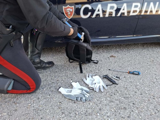 Il materiale è stato sequestrato e i due soggetti denunciati in stato di libertà all’Autorità Giudiziaria per possesso ingiustificato di arnesi atti allo scasso.