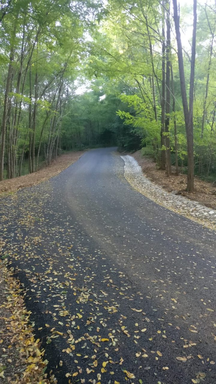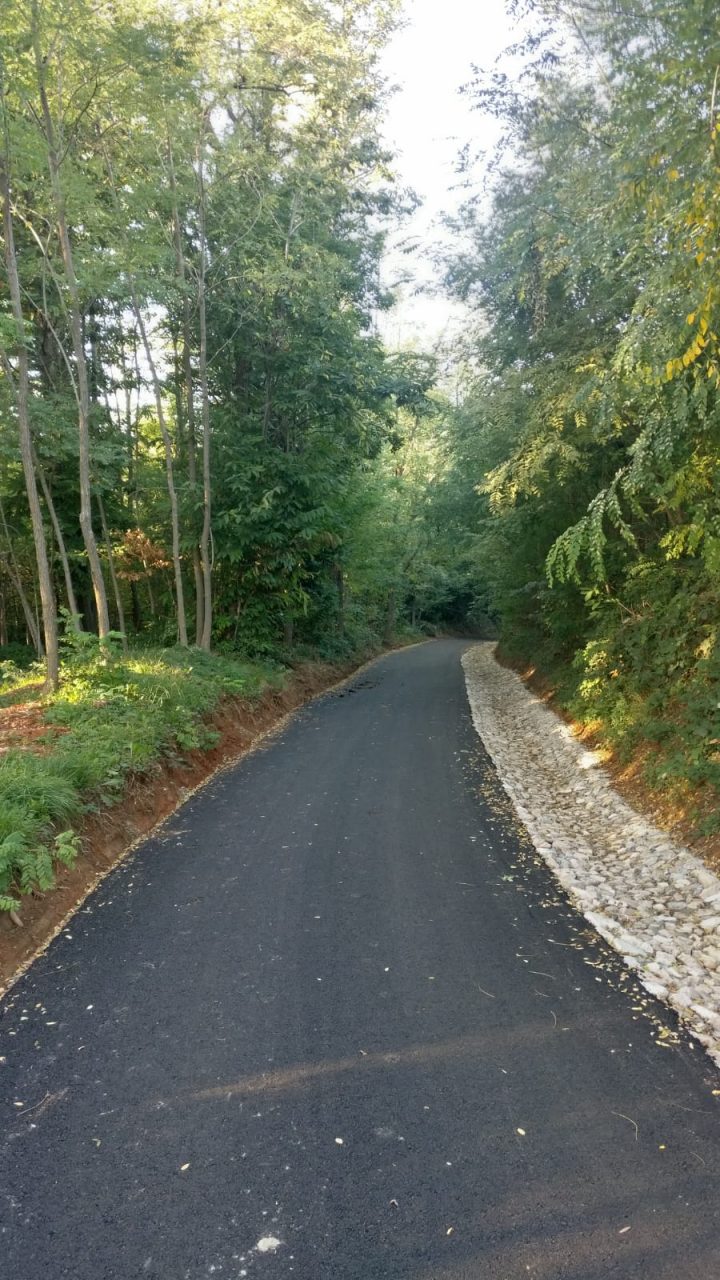 Costruite le cunette laterali in cemento e roccia tipica del Montello, sistemato il fondo con materiale stabilizzato sul quale l’asfalto potesse fare miglior presa, eseguita asfaltatura con blinder di cm 8.