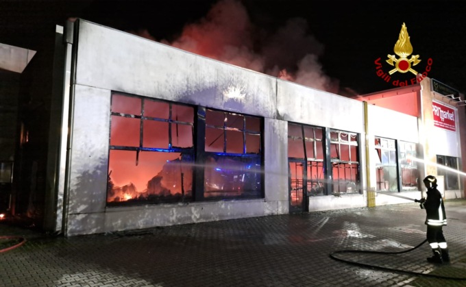 Vasto incendio al Primarket di Preganziol. Le immagini