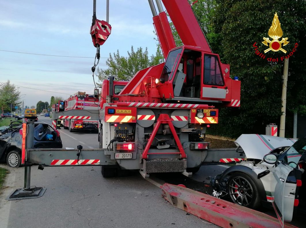 Vigili del fuoco di Castelfranco e carabinieri rischiano di essere investiti mentre prestano soccorso. Un’auto si è schiantata la notte scorsa contro l’autogru dei #vigilidelfuoco di Castelfranco Veneto impegnati in un incidente dove era rimasto ferito un automobilista. Due carabinieri riescono all’ultimo momento a spostarsi rimanendo lievemente feriti. Illesi gli occupanti dell’automobile, i due ragazzi che si sono schiantati con la loro Mini Cooper contro l’autogru che stava recuperando il mezzo incidentato finito nel fossato. I soccorritori erano intervenuti per soccorrere un automobilista ferito nei pressi di Trebaseleghe, in provincia di Padova.