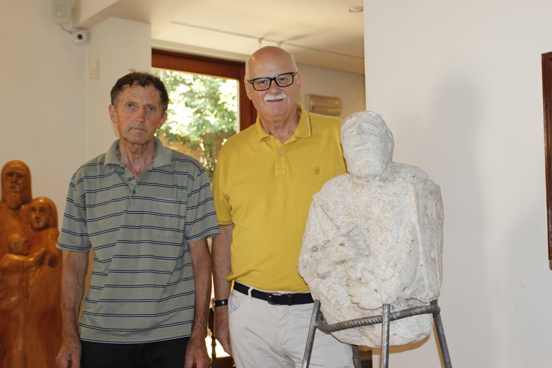 Così introduce la mostra e l’artista Carlo Simioni: “Una produzione artistica, la sua, quasi mai esibita in pubblico se non con pochi esemplari. Sembra strano che un artista non ambisca al giusto riconoscimento della propria opera, ma chi conosce il nostro scultore capisce, di primo acchito, che non è lui a governare la propria “vis artistica” ma, al contrario, è l’arte che comanda i suoi gesti imponendogli di essere suo tramite di “far uscire” – come egli stesso afferma – dai sassi, dai tronchi e per fine dei gusci di noce quello che giaceva nascosto, silente, ma smanioso di venire a luce”.
