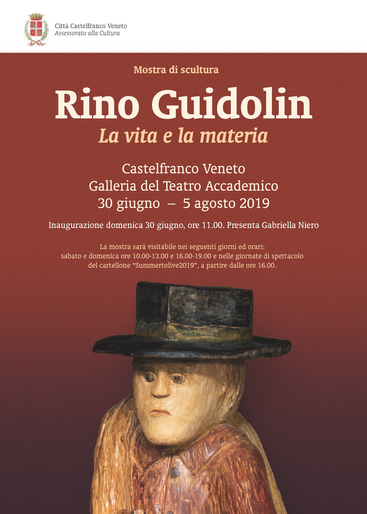 Summer to Live, tradotto la rassegna estiva di Notti Magiche da vivere in città, costellata da 18 appuntamenti di grande spessore capaci di coinvolgere tutte le fasce d’età, avrà nel fine settimana il suo happening con il concerto d’apertura sabato sera in piazza Duomo dell’Orchestra Sinfonica Italiana diretta dal maestro Diego Basso e domenica mattina 30 giugno, alle ore 11, l’inaugurazione della mostra di scultura di Rino Guidolin alla Galleria del Tetro Accademico. Questa mattina in Municipio la conferenza stampa alla presenza dell’assessore alla Cultura, Franco Pivotti e dello stesso artista castellano. Un incontro tra l’Assessore e l’artista, Rino Guidolin avvenuto nell’estate del 2018 in occasione della sagra a Sant’Andrea O.M., con il locale comitato che aveva organizzato una piccola esposizione a Villa Barbarella. Da qui è nato il percorso che ha portato alla mostra che sarà visitabile per l’intero periodo estivo di Summer to Live.