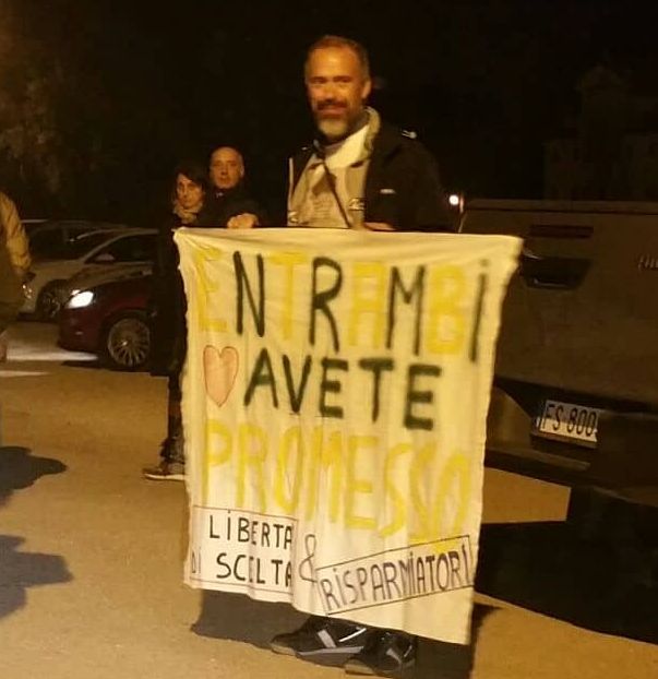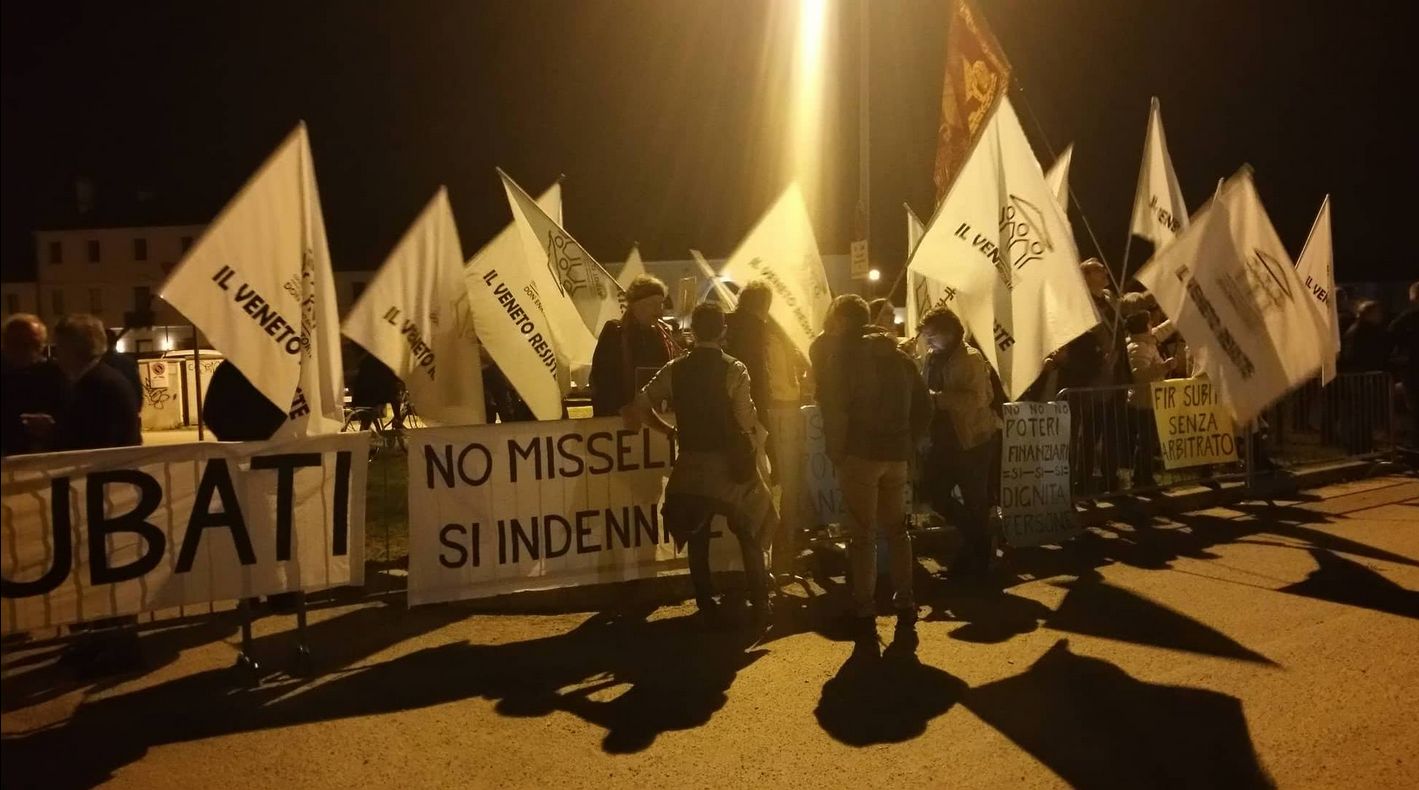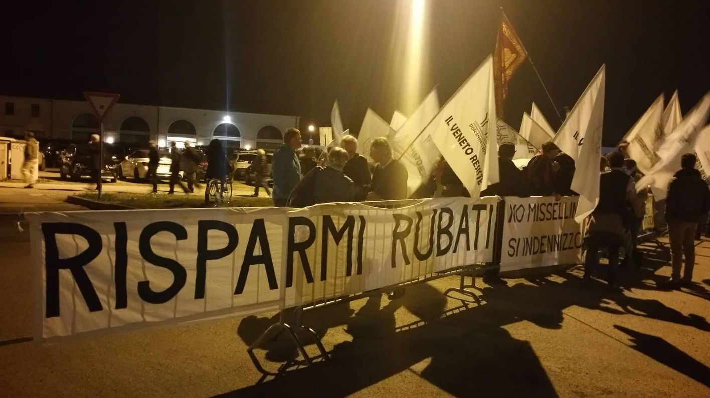 Fuori dal grande tendone una nutrita delegazione del Coordinamento don Torta, l’associazione che difende i risparmiatori truffati dalle Banche Venete, Popolare di Vicenza e Veneto Banca.