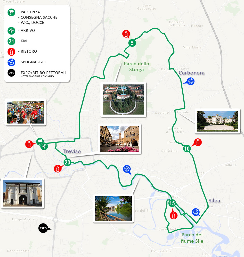 La mezza maratona scatterà, da Viale Bartolomeo d’Alviano, venti minuti dopo la prova più breve, alle 9.30 in punto, per ridurre al minimo l’incrocio con i partecipanti – anche quelli più lenti – alla 10K. Gli atleti, una volta usciti dal perimetro centro storico, percorreranno viale Vittorio Veneto, si dirigeranno verso Sant’Artemio, attraverseranno il territorio comunale di Carbonera e Silea, per poi imboccare la Restera e seguire il corso del Sile sino al ritorno in città.