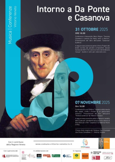 Il 7 novembre, l’Aula Magna del Campus San Giuseppe ospiterà alle 18:00 la conferenza Casanova dalla tavola alla cabala di Luca Colferai, accompagnata da musiche di Nino Rota. Nello stesso pomeriggio, alle 16:00, la Biblioteca Civica proporrà la proiezione del film di Luigi Comencini, Infanzia, vocazione e prime esperienze di Giacomo Casanova Veneziano (1969), seguita in serata, alle 20:30, dal capolavoro di Ettore Scola, Il mondo nuovo (1982).