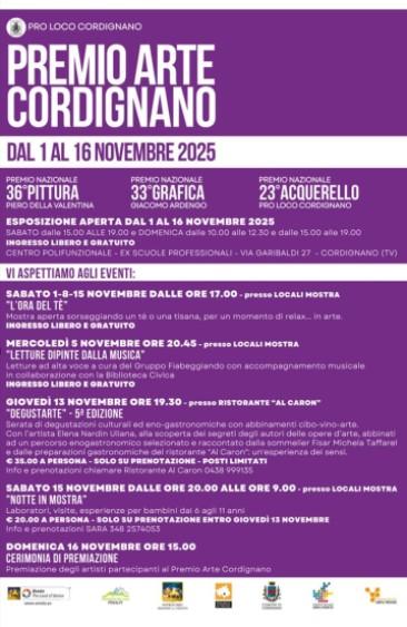 Il programma prevede vari eventi collaterali: mercoledì 5 novembre Letture Dipinte dalla Musica con il Gruppo Teatrale Fiabeggiando; sabato 8 e 15 novembre L’ora del tè, visita rilassata con degustazione; giovedì 13 novembre Degustarte al Ristorante Al Caron, serata enogastronomica (35 €, su prenotazione); sabato 15 novembre Notte in mostra, attività notturne per bambini (20 €, iscrizione entro il 13 novembre).